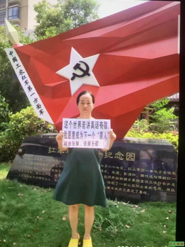 段桃园女士因自己维权和帮人呼吁,多次被拘留。其中2024年8月为张展举牌呼吁被行政拘留10日。随后她被边控,警方不给她办理出国护照。谭树平先生也全国四处声援,多次被警方“关照”。